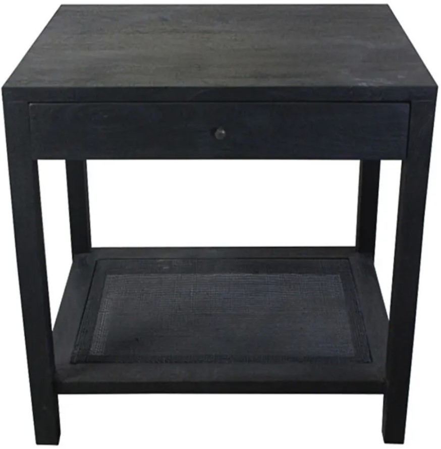 Let your inner interior designer shine with the Barbados black cane end table by Crestview collection. This modern-rustic piece is made from natural mango wood in classic, four-post design. Naturally finished with a clear varnish topcoat, the table includes a sliding drawer with antique black hardware for storing electronics or small articles.Read More